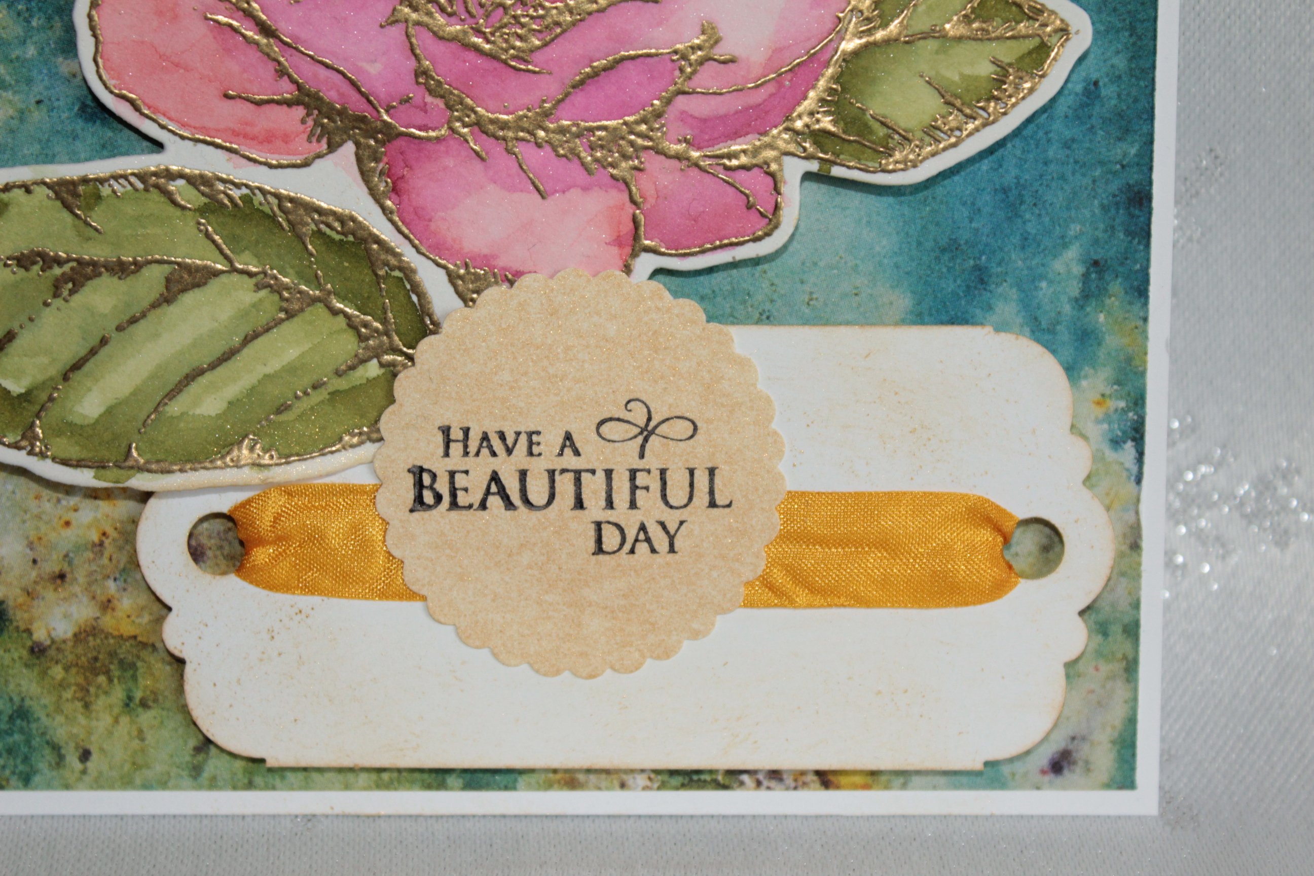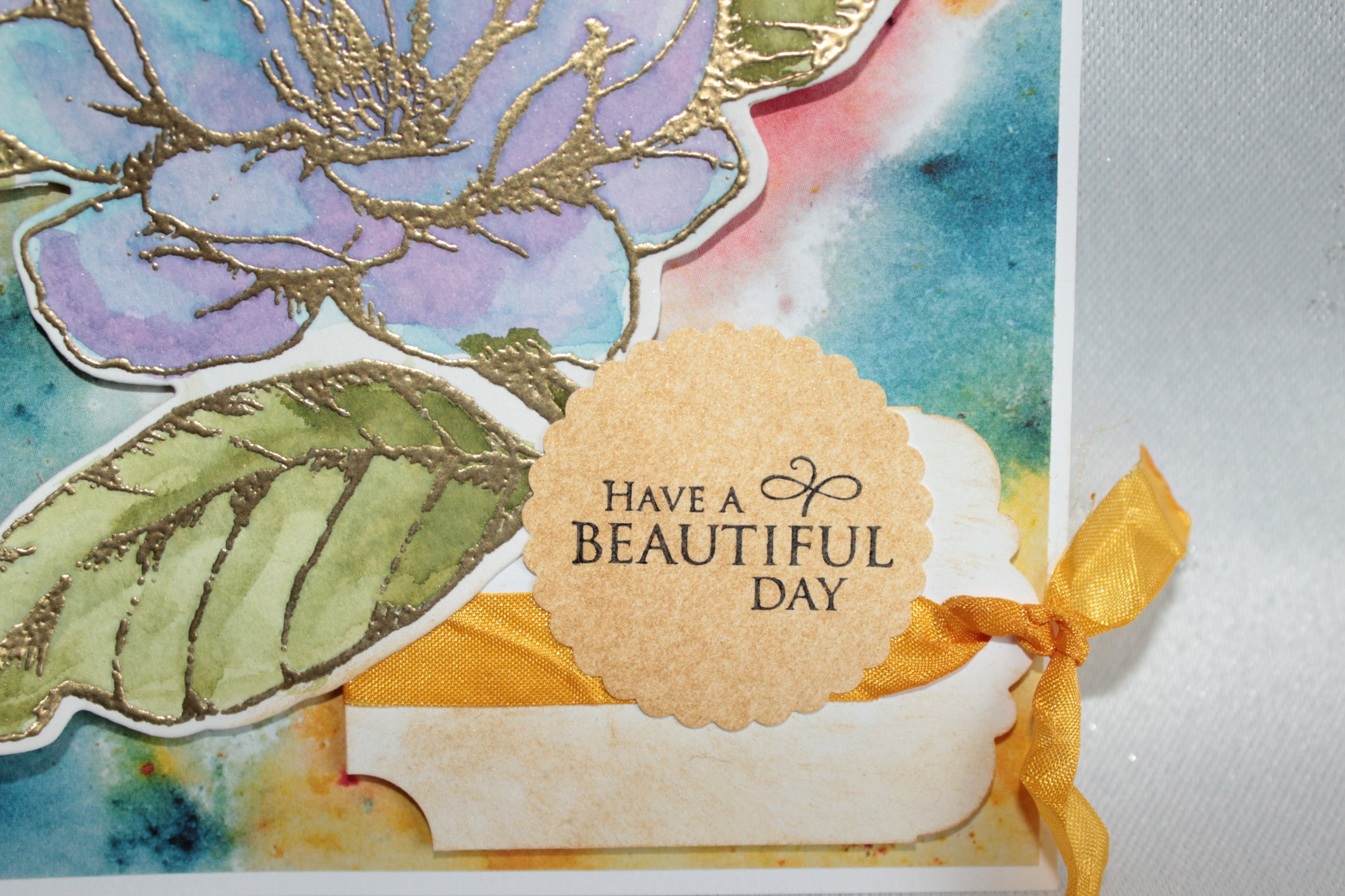 J’ai collé l’étiquette sous la fleur et j’ai monté l’ensemble avec des Stampin’Dimensionals pour plus de volume.