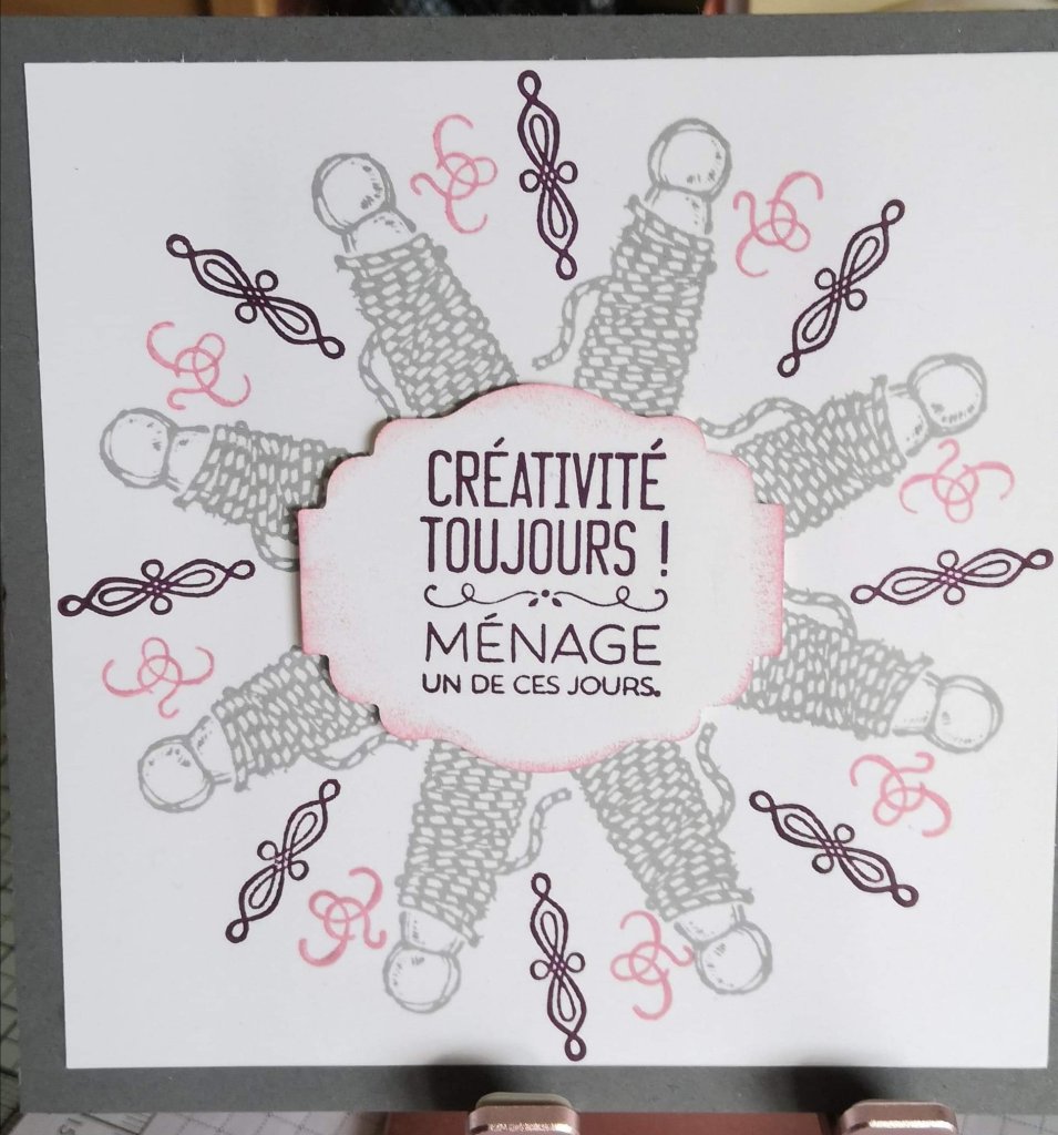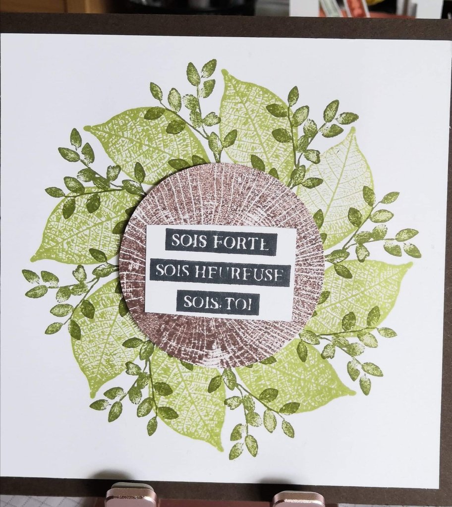 Une jolie carte Chevalet avec le papier printemps parisien et le set de tampons Positive thoughts