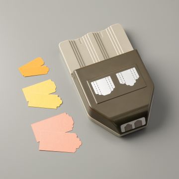 Pour l’étiquette, j’ai utilisé la nouvelle perforatrice « Formes au choix Étiquettes fantaisistes » et un sentiment du set de tampons « Mercis fignolés ». Je l’ai matée pour la faire ressortir et montée en 3D pour plus de volume. Deux petits strass « Champagne », et le tour est joué !