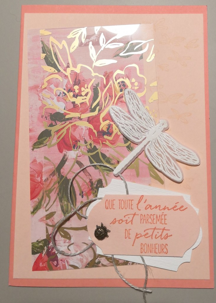 Je vous présente ma carte créée lors de notre échange avec les copines de lignée !