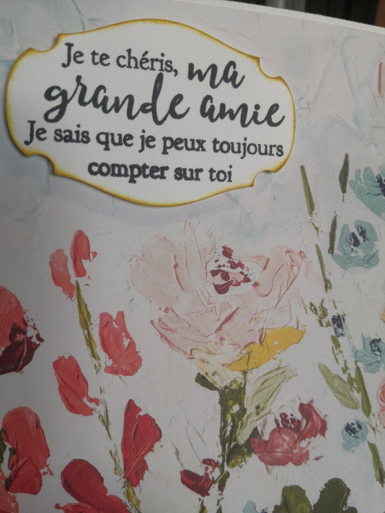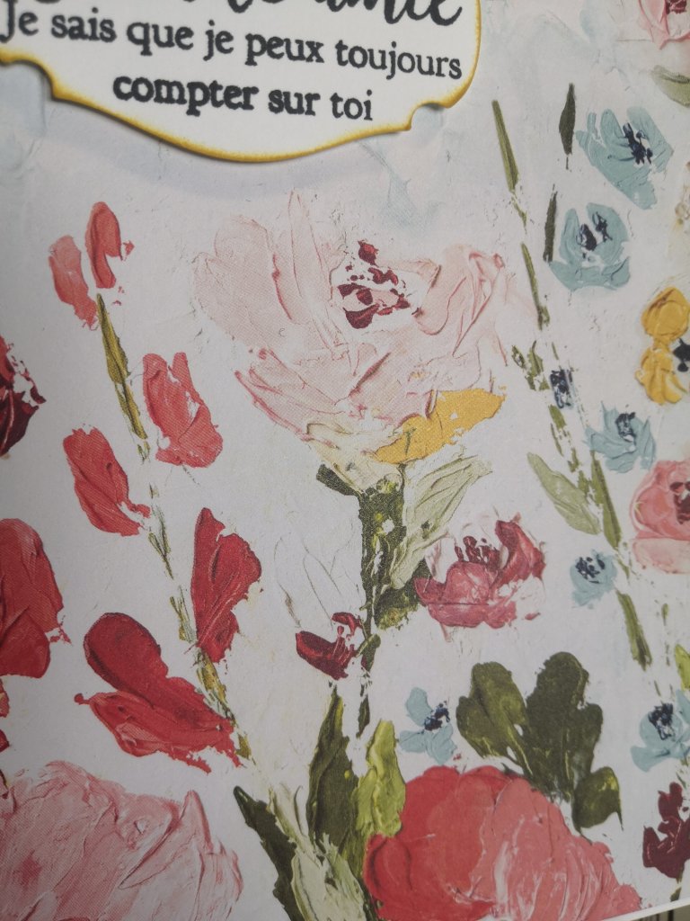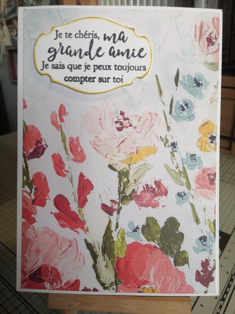 Pour cette carte, j’ai simplement collé sur ma base de carte du papier de la série design « Fleurs des Beaux-arts » (Réf 154558 du Mini-catalogue JJ).
