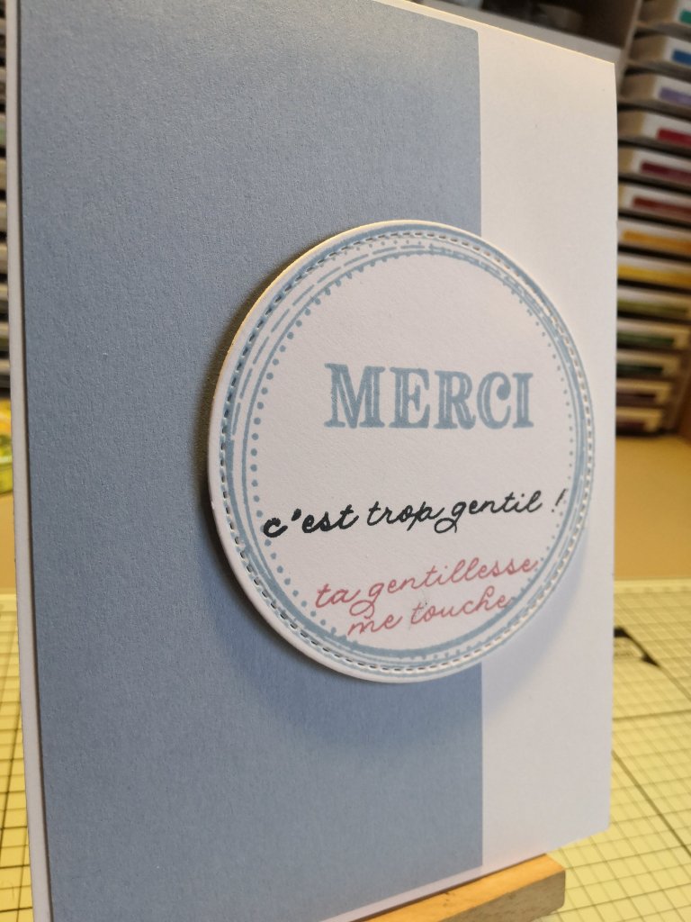 Le thème : remerciements ; Produits : Tampons, Encre, papier et notre produit en fin de série préféré.