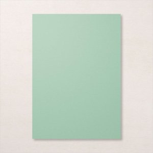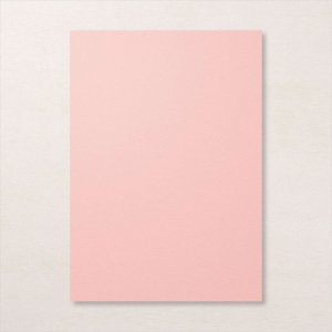 Sur une base de carte « Macaron à la menthe », j’ai collé du papier à motifs que j’avais évidé au préalable pour pouvoir glisser du Cardstock « Fleur de Cerisier ».
