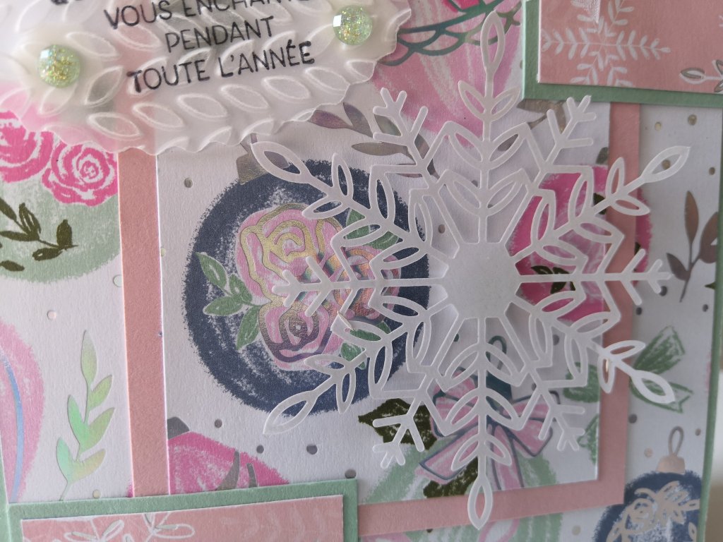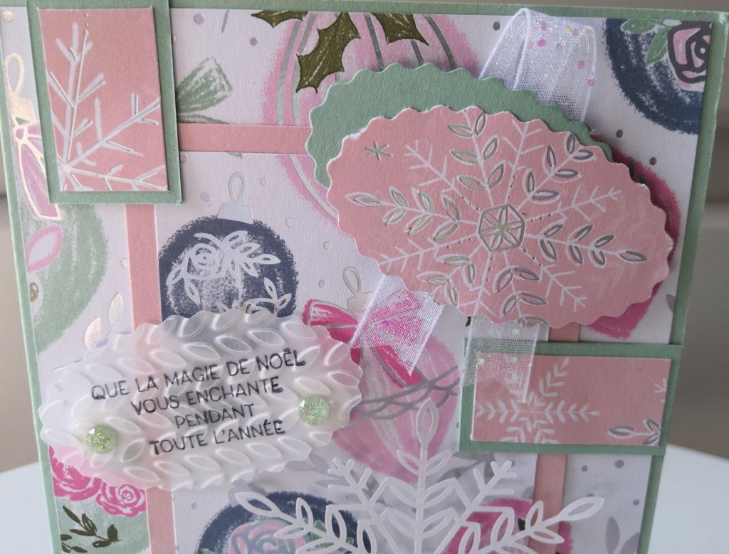 Aujourd’hui, je vous présente une jolie carte créé avec le papier design « Splendide Fantaisie » du mini-catalogue juillet-décembre 2021.