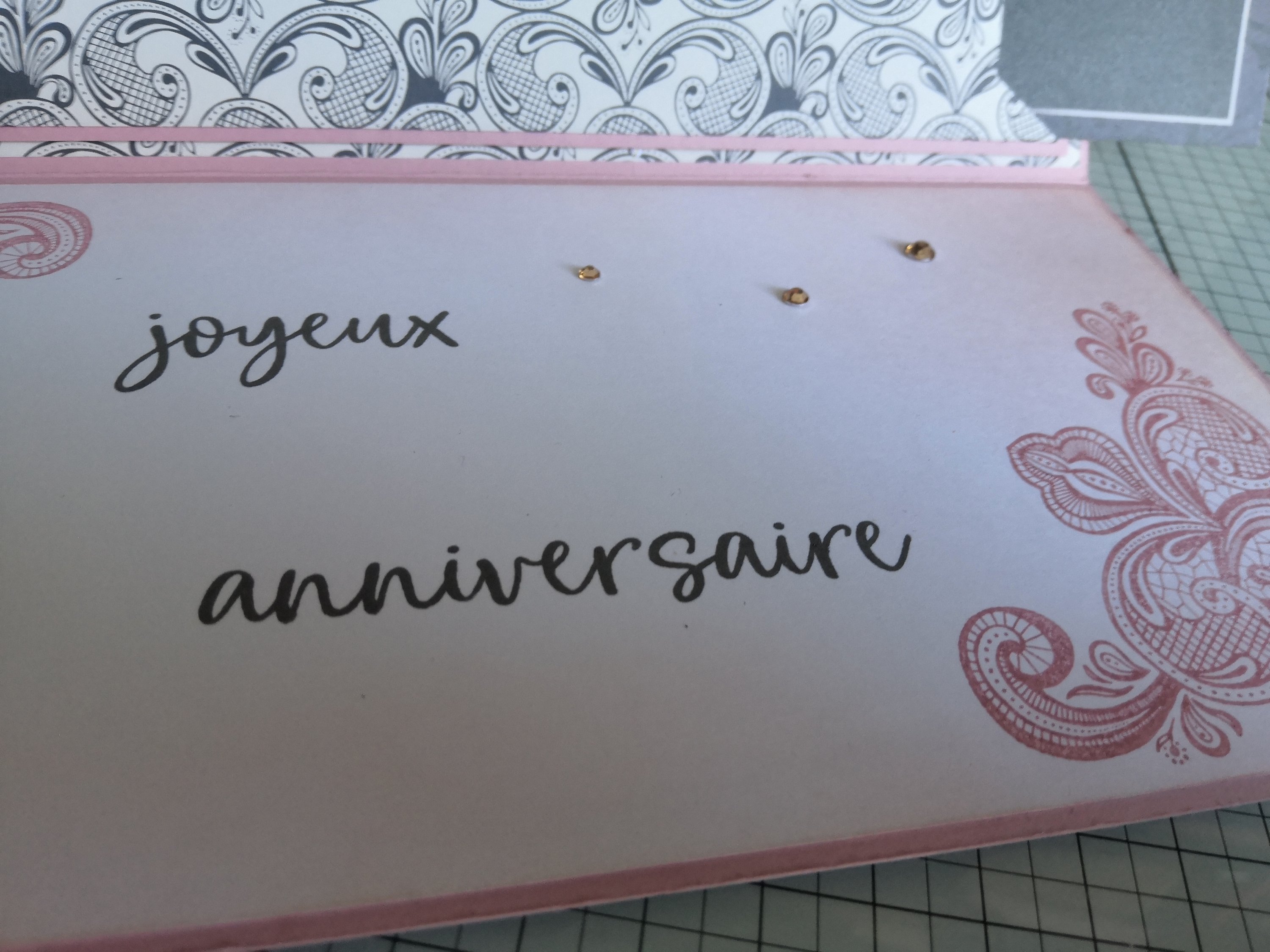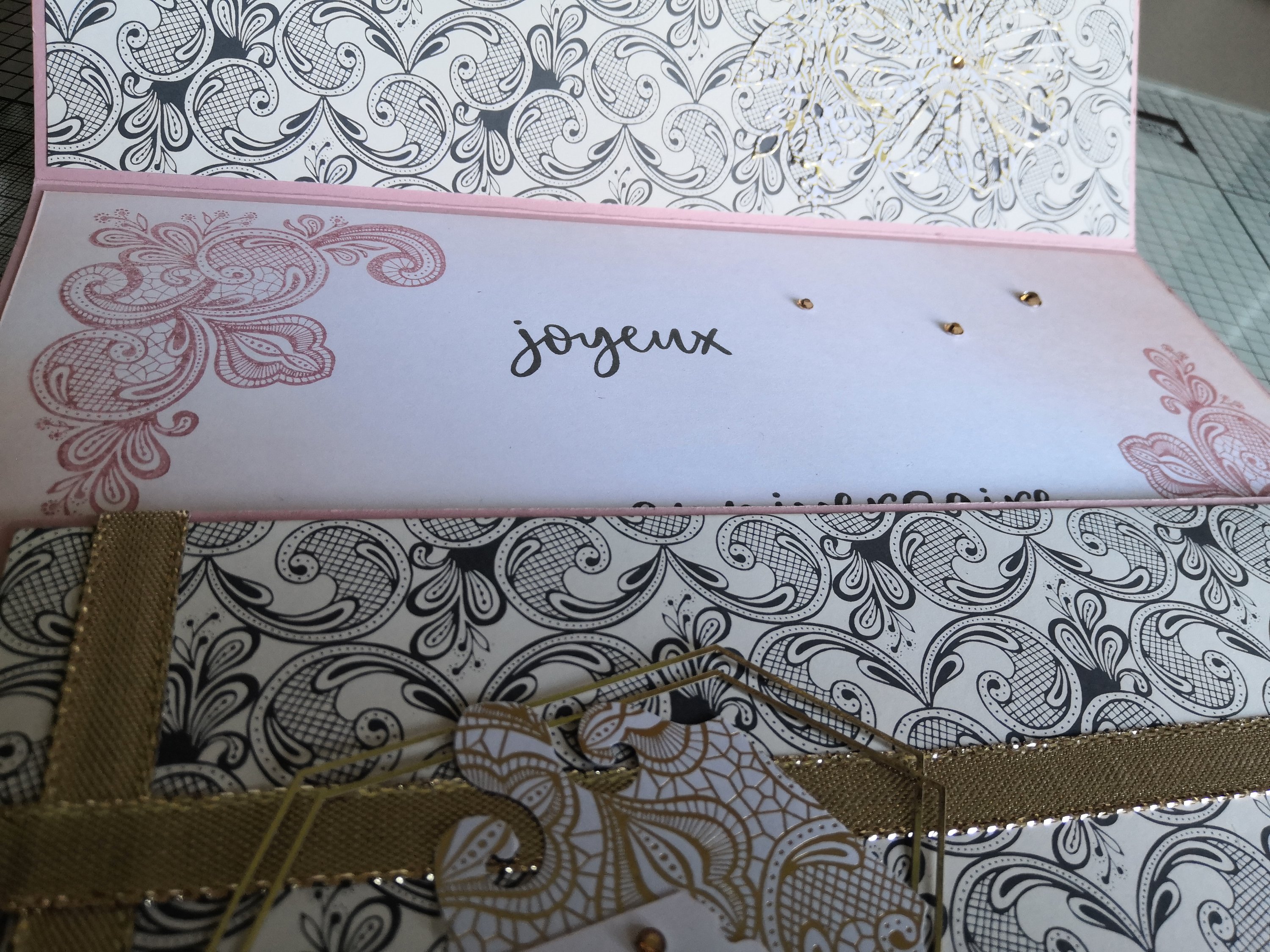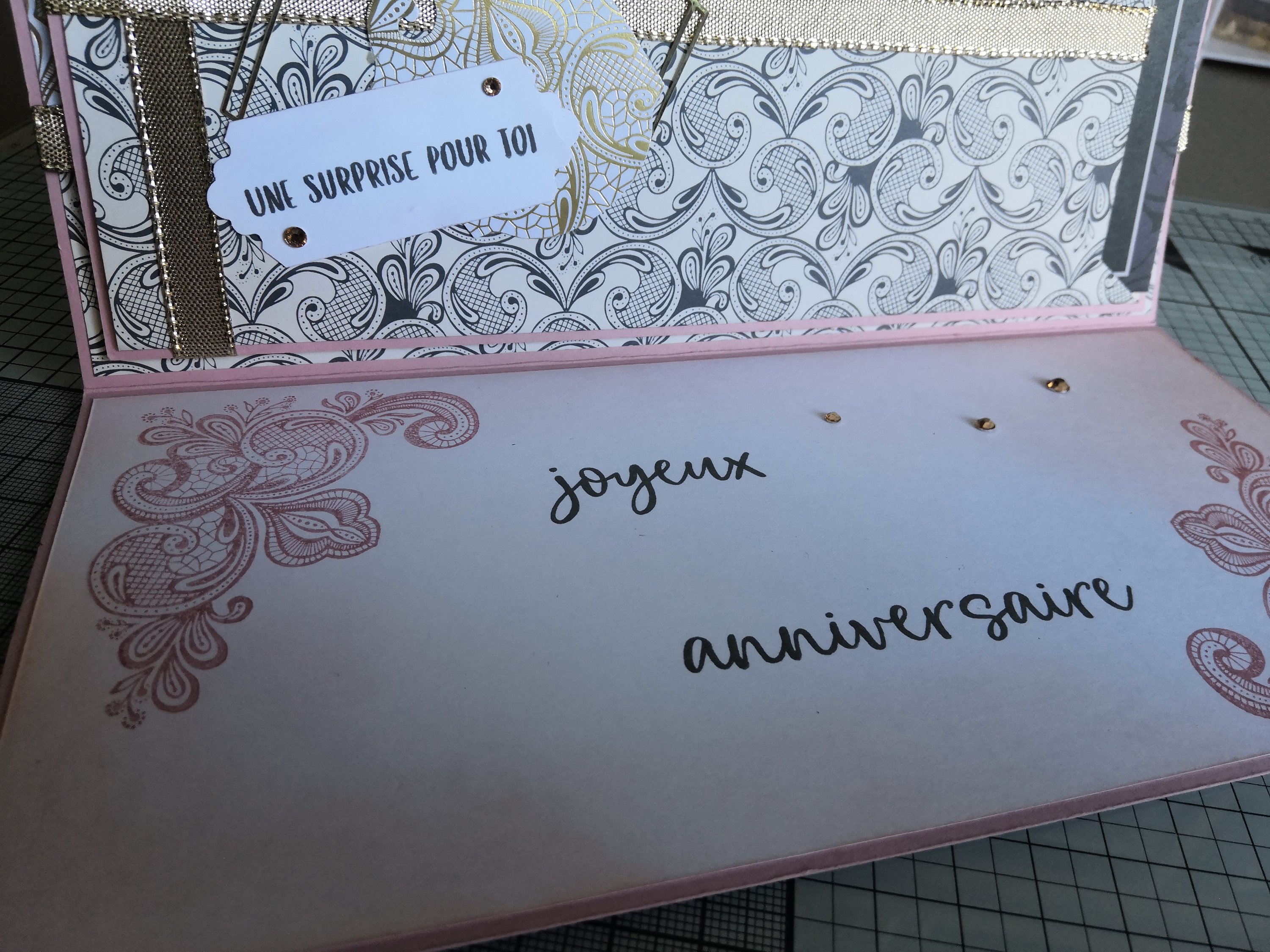 En soulevant le rabat, on y découvre la jolie découpe provenant des poinçons « Découpes d’artiste » de la collection Encre Animée « . Et d’un autre sentiment.