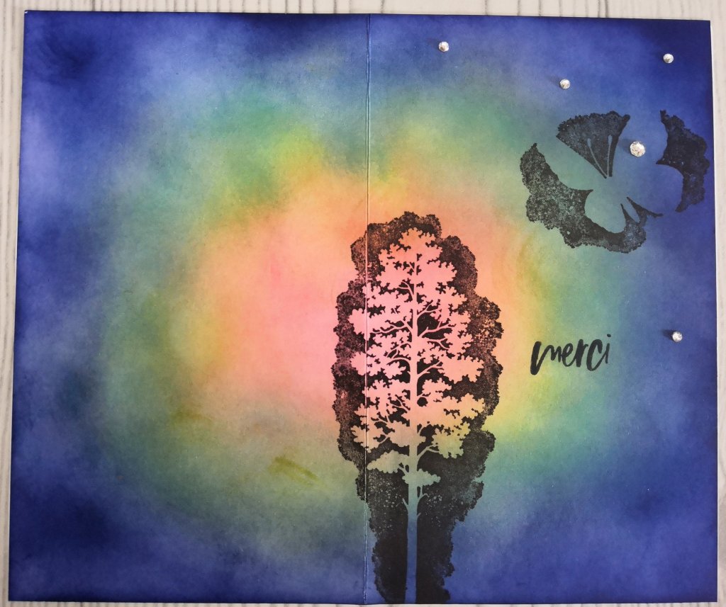 Pour ce projet j’ai joué avec mes encres et mes Brosses Estompe pour préparer un fond de carte.