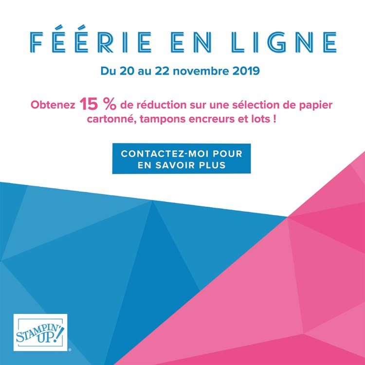 Bonjour à tous, À partir de demain, mercredi 20 novembre, et jusqu’au 23 novembre, venez profiter de cette jolie promotion ! Obtenez jusqu’à 15 % de réduction sur un large sélection de papiers, de tampons encreurs et de lots de tampons avec leurs dies 😉 Rendez-vous vite sur ma boutique en ligne ! 😉 Ma […]