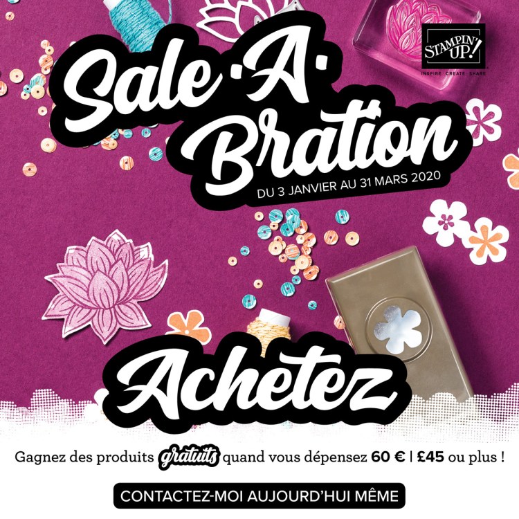Coucou tout le monde, À partir de demain et jusqu’au 31 mars, venez découvrir sur ma boutique en ligne les nouveaux produits cadeaux de Sale A Bration ! Brochure Sale A Bration 2ème publication À partir de 60 € d’achats, vous avez le droit à de jolis produits offerts. Ma boutique en ligne Et toujours […]