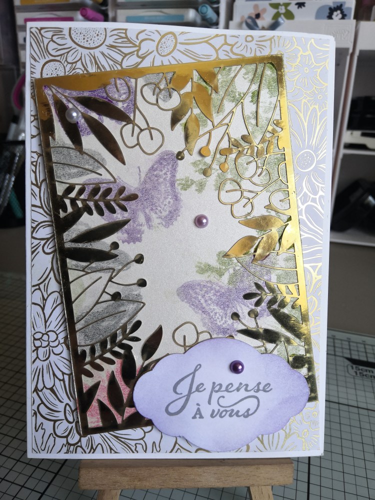 Bonjour à tous. J’espère que vous allez bien. J’aime cette période de renouveau qu’est le printemps. Alors, voici mon projet Pour cette carte, j’ai utilisé le papier de la série design « Jardin Ornemental » (Réf 152488 du CA), le papier spécialité « Nacré » de la collection « Sable et Mer » (Mini-catalogue J. J. 21) et d’un cadre provenant […]